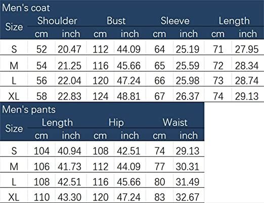 MATERIAL:Men's 2 Pieces Tracksuits are made of 65% cotton; bright color and long-lasting color;material smooth to the touch; elastic and anti-folding and shrinking.FEATURES:Pant have two inclined pockets to keep your hands warm; men's slim suits. Adjustable drawstring sports pants with pocket for cell phones; cards and cash for everyday travel.OCCASION:It is very suitable for leisure and daily wear; such as men's and teenagers' sportswear; club clothes; running; jogging; gym; party; holiday. It is a birthday gift for husband; father and son. Suitable for autumn; winter and spring.FASHION:3D printed Tracksuit Set is the newest fashion ; fashion design make you more charming; vibrant; and attractive.NOTICE:Package included 1x Coats+4x pants in same size . Regarding this men's fashion outdoor sports leisure suit; Please refer to the size chart carefully. If you have any questions before⁡ter sales; please feel free to contact us and we'll try our best to assist you.