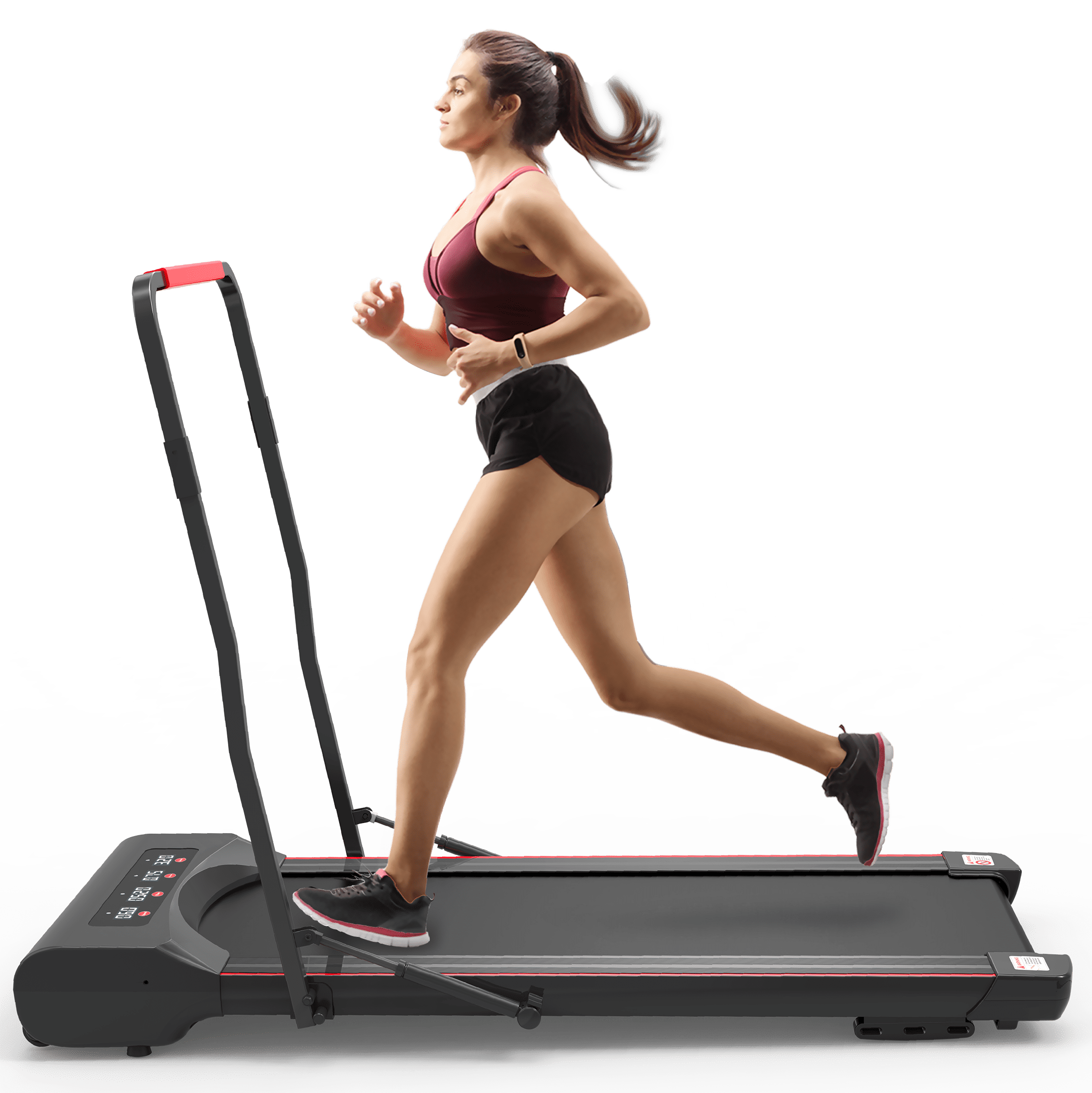 [Small Spaces Storage]Portable treadmill pad has been 99% assembled upon arrival and can be used directly after it's plugged in! Two wheels are installed on the front of folding treadmill, so you can move the flat treadmill more easily after the handle is folded up.