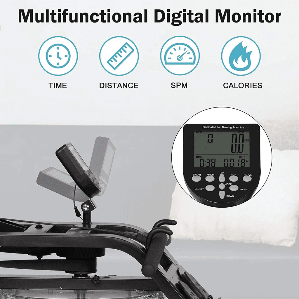Digital Monitor: Equipped with large LCD monitor,which racks your fitness data including time, SPM (stroke per minute), distance, speed,hours of calorie.