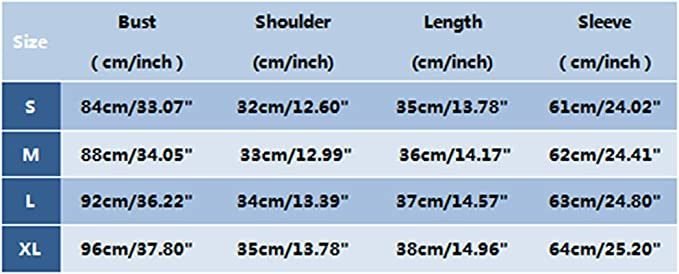 Style: CasualCollar type: Button DownSize Notes:* Size:S-----Bust:84cm/33.07"-----Shoulder:32cm/12.60"-----Length:35cm/13.78"-----Sleeve:61cm/24.02"* Size:M-----Bust:88cm/34.05"-----Shoulder:33cm/12.99"-----Length:36cm/14.17"-----Sleeve:62cm/24.41"* Size:L-----Bust:92cm/36.22"-----Shoulder:34cm/13.39"-----Length:37cm/14.57"-----Sleeve:63cm/24.80"* Size:XL-----Bust:96cm/37.80"-----Shoulder:35cm/13.78"-----Length:38cm/14.96"-----Sleeve:64cm/25.20"Delivery:We will ship out your orders within 7 business day by E-packet or other commercial post service. We have Standard Shipping service and Expedited shipping to choose.About Standard Shipping service, the packages will usually take about 7-15 business days to be delivered to you .About Expedited shipping, the packages will usually take about 4-6 business days to be delivered to you .Note1. Please allow 1-2cm differs due to manual measurement.