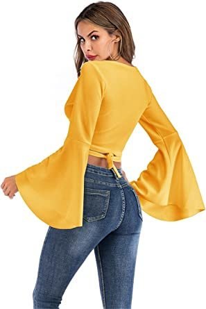 Women's Sexy Tie Up Crop Top Ladies Flared Sleeve Deep V Neck Casual Basic T Shirt Women's Sexy Tie Up Crop Top Ladies Flared Sleeve Deep V Neck Casual Basic T Shirt Women's Sexy Tie Up Crop Top Ladies Flared Sleeve Deep V Neck Casual Basic T Shirt