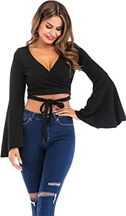 Women's Sexy Tie Up Crop Top Ladies Flared Sleeve Deep V Neck Casual Basic T Shirt Women's Sexy Tie Up Crop Top Ladies Flared Sleeve Deep V Neck Casual Basic T Shirt Women's Sexy Tie Up Crop Top Ladies Flared Sleeve Deep V Neck Casual Basic T Shirt Women's Sexy Tie Up Crop Top Ladies Flared Sleeve Deep V Neck Casual Basic T Shirt